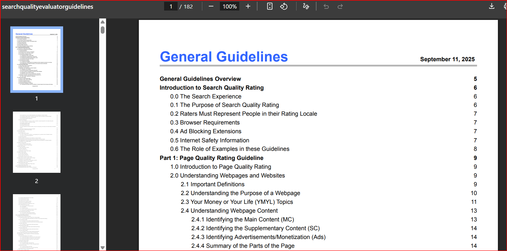Hal ini didefinisikan dalam Pedoman Penilai Kualitas Pencarian Google, buku panduan yang digunakan oleh peninjau (yang dikenal sebagai Penilai Kualitas) untuk memberikan umpan balik pada hasil pencarian.