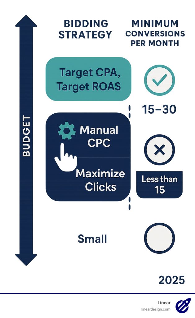 Untuk campaign baru yang belum punya data konversi, mulai dengan Maximize Clicks selama 2-4 minggu pertama untuk mengumpulkan traffic dan data. Setelah conversion tracking terpasang dan minimal 30 konversi terkumpul dalam 30 hari, beralih ke Target CPA (Cost Per Acquisition) atau Maximize Conversions. Google merekomendasikan Smart Bidding dengan data konversi yang cukup karena algoritmanya menggunakan ratusan sinyal real-time yang tidak bisa diproses secara manual.