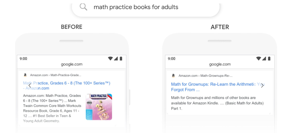 Dari gambar di atas, kita dapat melihat bahwa setelah menerapkan model BERT, Google lebih memahami kueri pencarian, sehingga menghasilkan hasil yang lebih akurat.